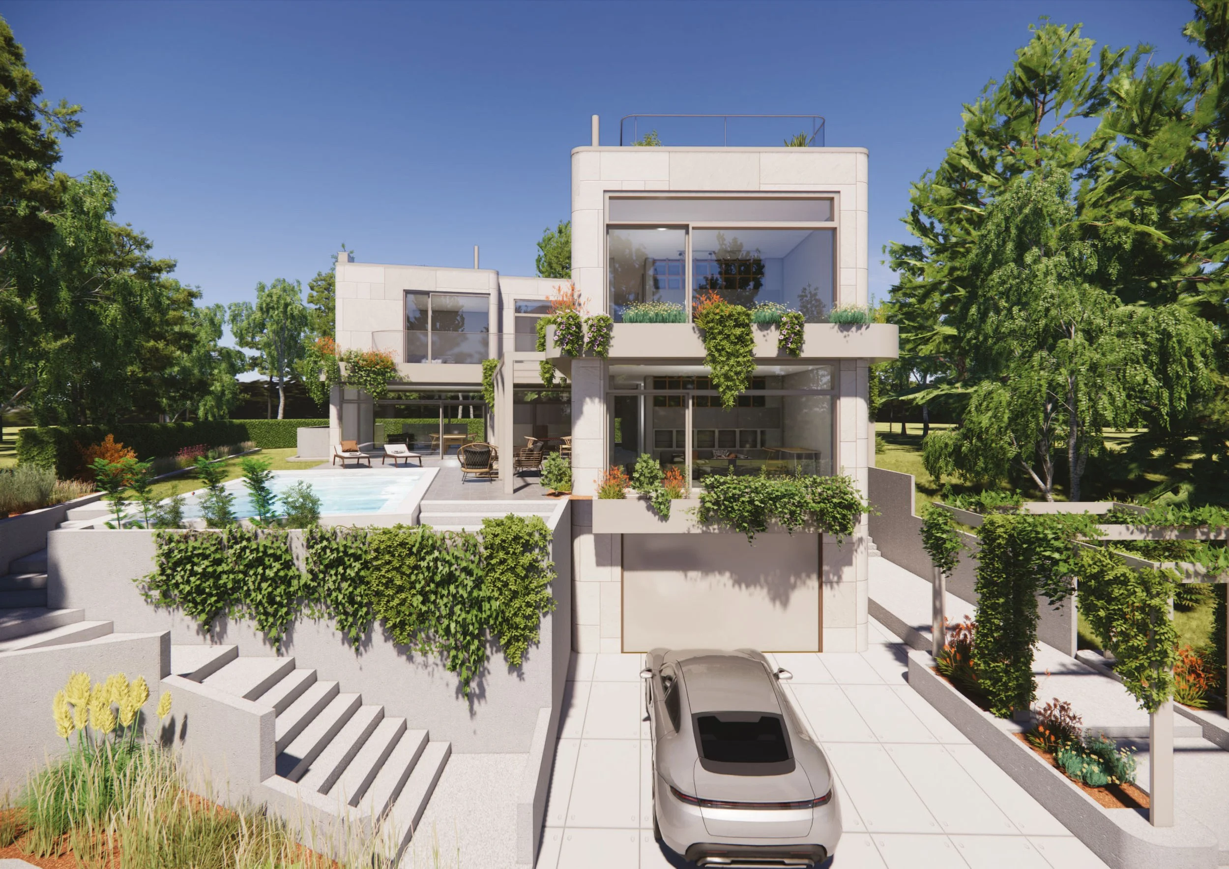 Byggnaden är placerad som ett vinklat L och är uppdelad av ideala rum. Innergården mot söder och väster ligger på en klippa. Växtlådor som övergår i balkonger och pergola omsluter byggnaden och skapar en varierad utemiljö med varma rumligheter som kontrasterar mot de grå klipporna och grå tallstammarna i Stockholms skärgård. Den klättrande växtmassan finns även inuti huset med en vacker växtvägg som ger god akustik och ögonfröjd.